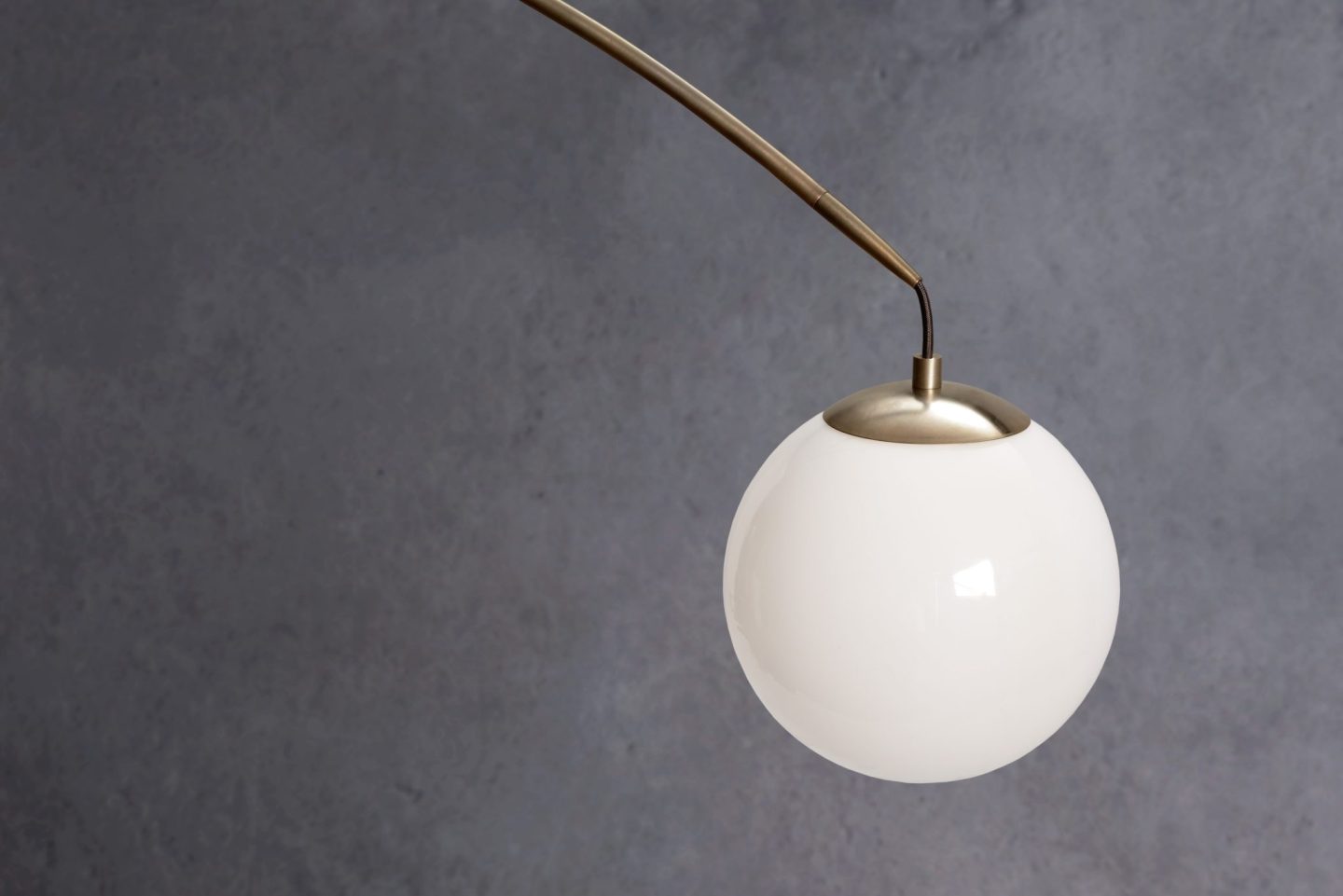Dimensions: W – 74 1/5″, D – 10″, H – 23 1/5″ from top of arc to bottom of globe (stem height is cut to order) Globe: 10″ Dia.