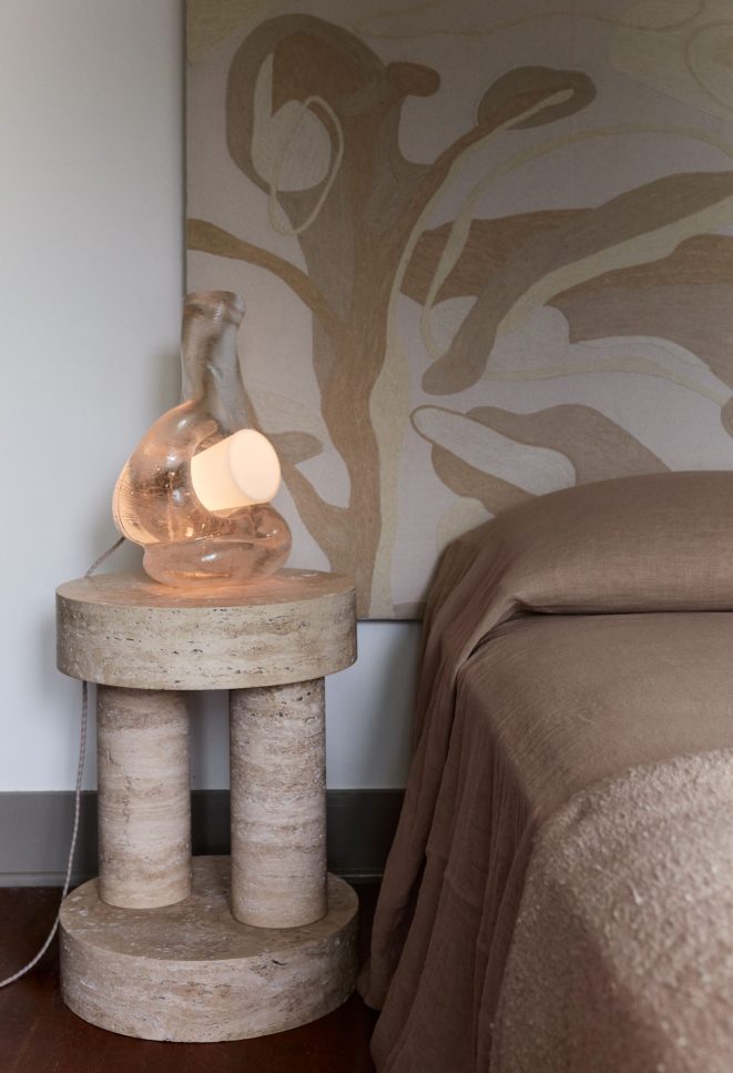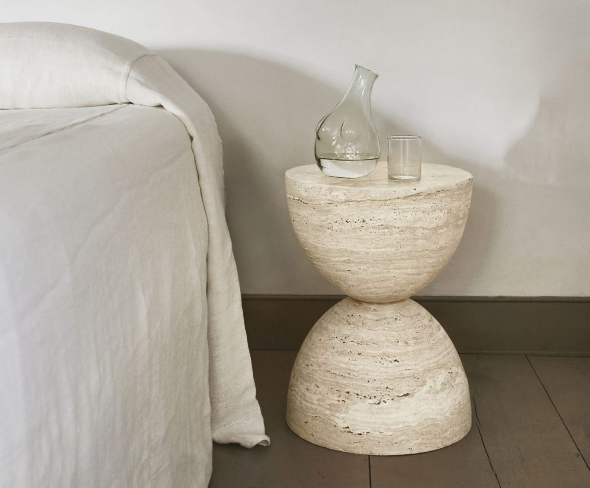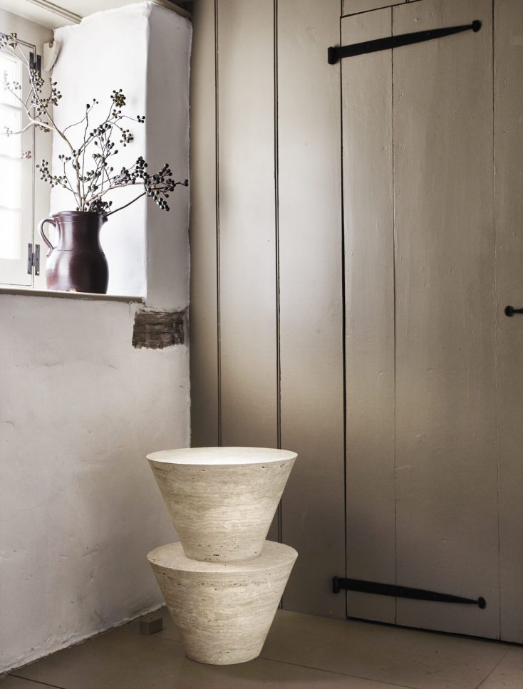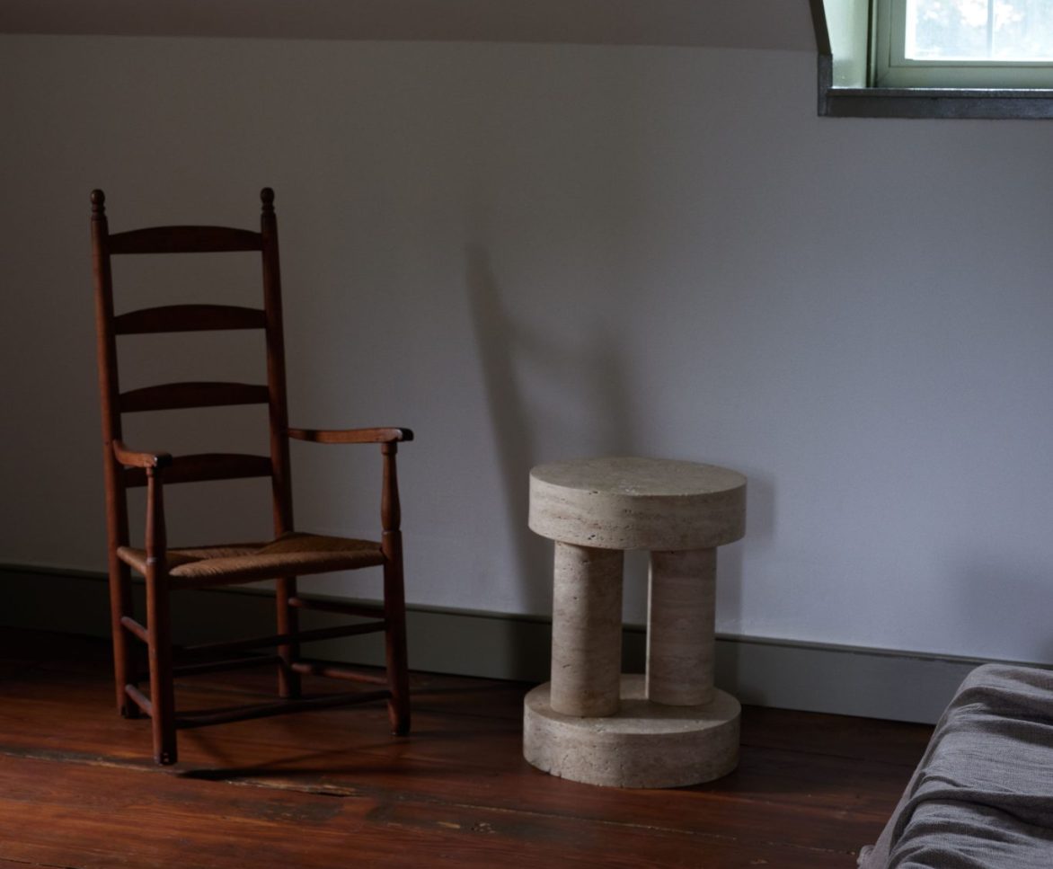 Carved from travertine or wood, these tables take their cue from carved Igbo Stools. There are four variations in the series.