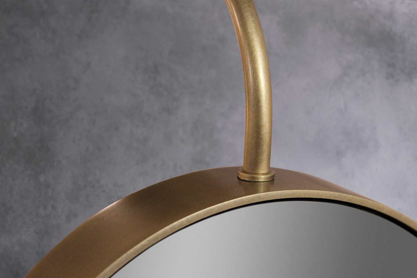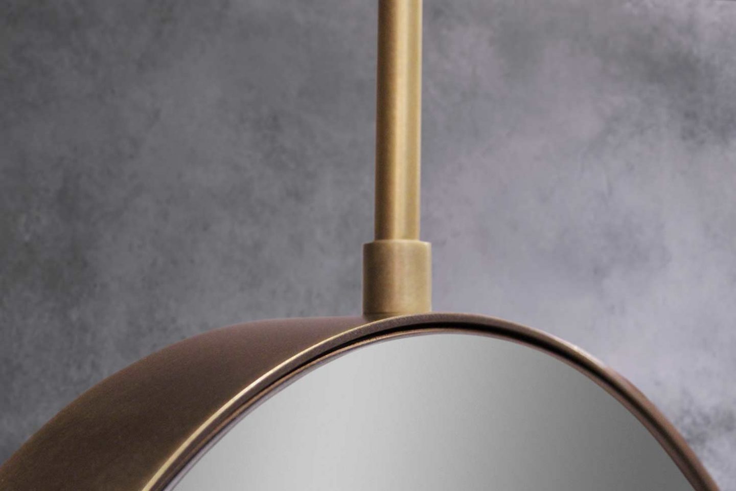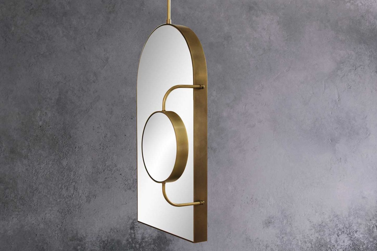 Made to hang from the ceiling, this sculptural piece has an articulated 5x magnifying side mirror.