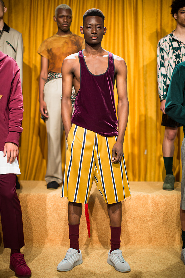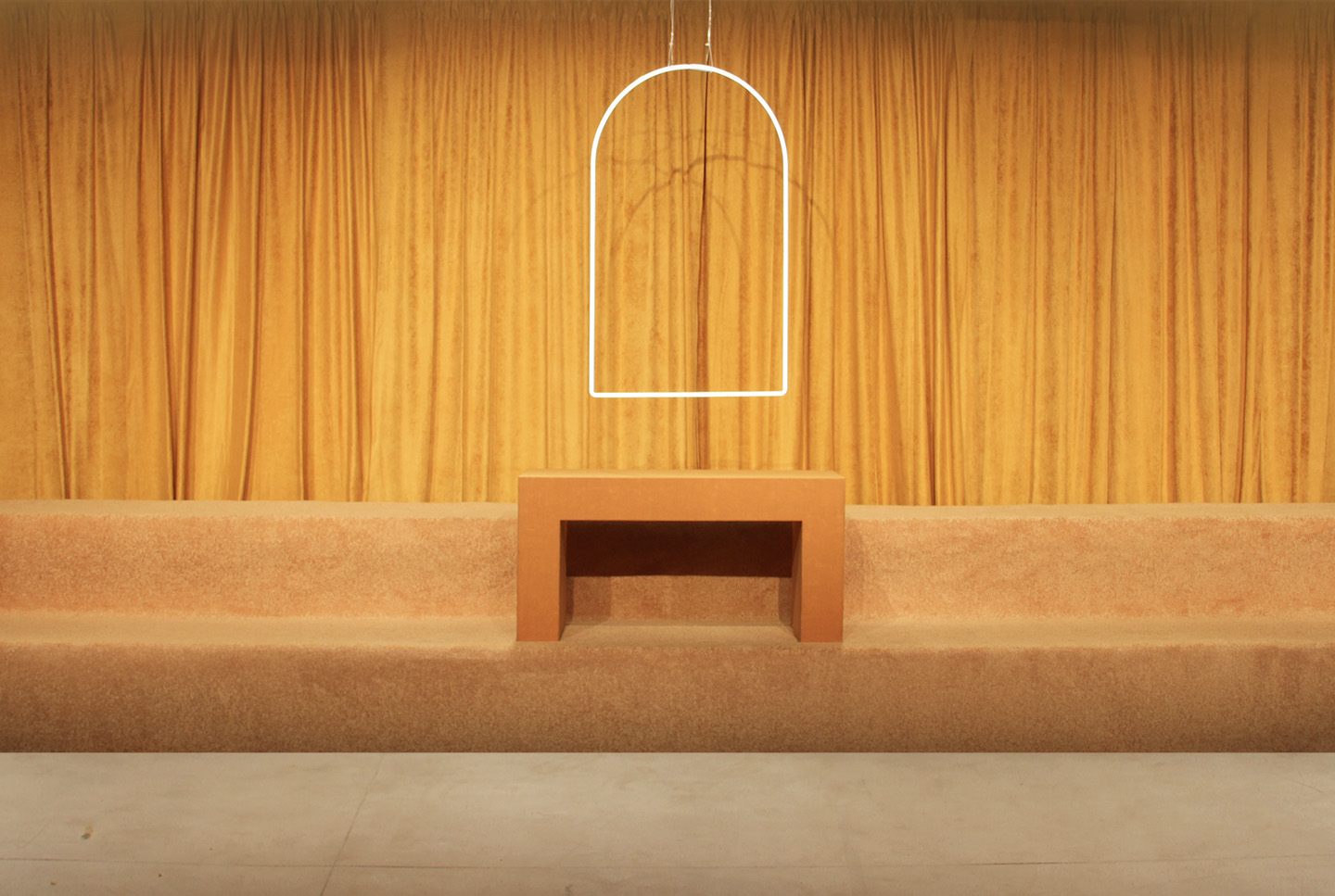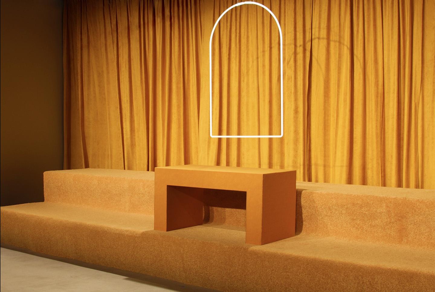 Using heavy velvet drapery, carpeted steps and neon, we designed a contemporary altar for n-p-Elliot’s Spring 2017 presentation to enhance the collection’s theme of kinky Catholicism as part of New York Men’s Fashion Week sponsored by the CFDA.