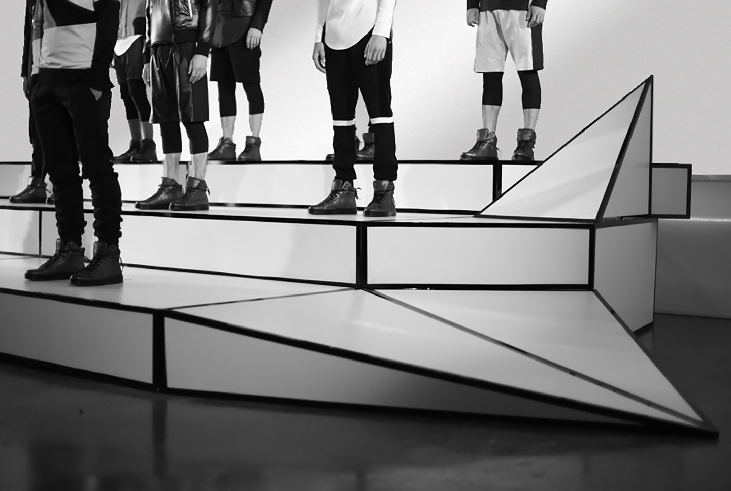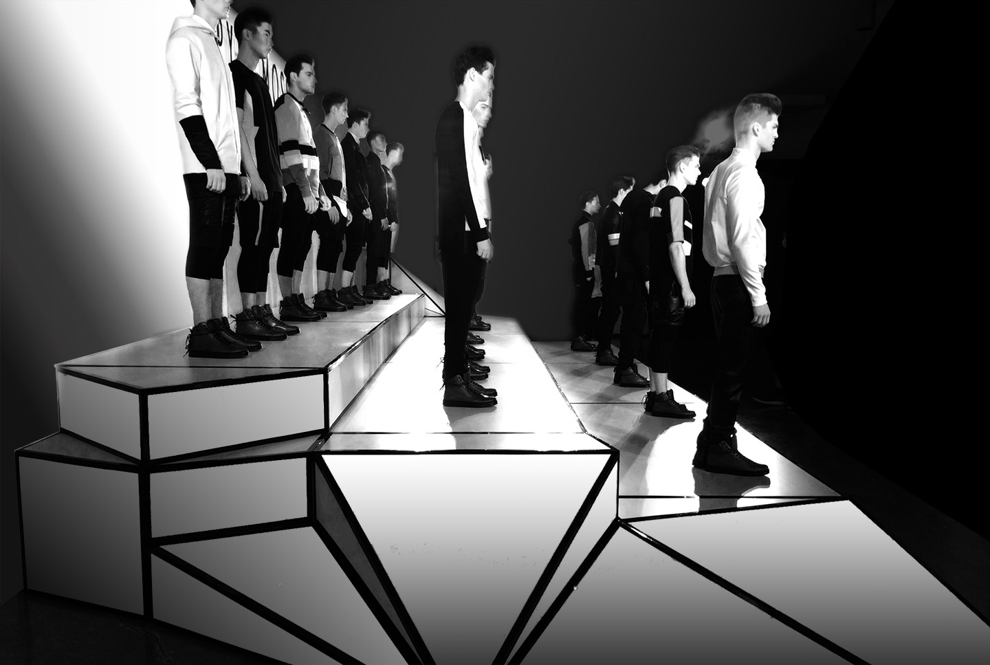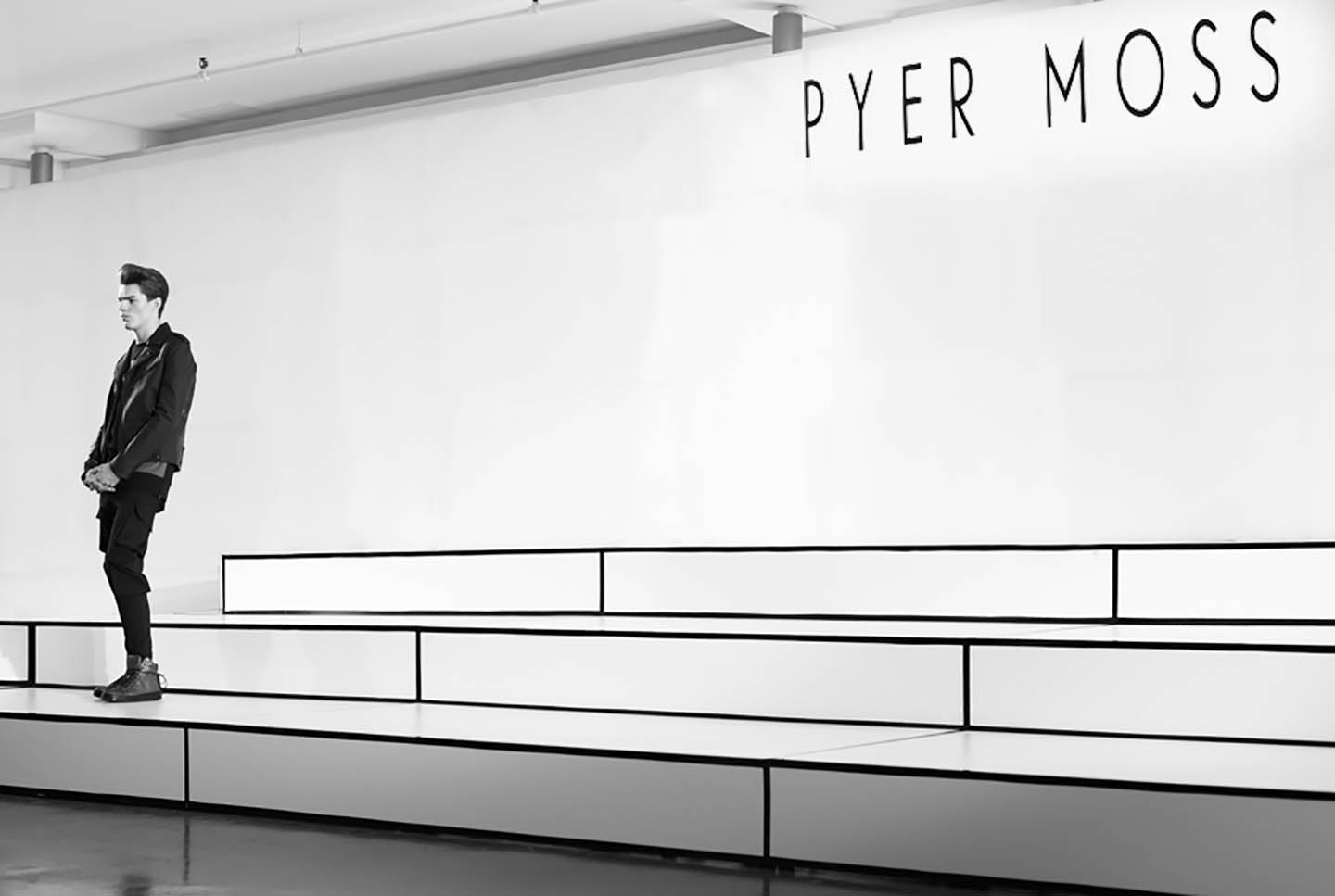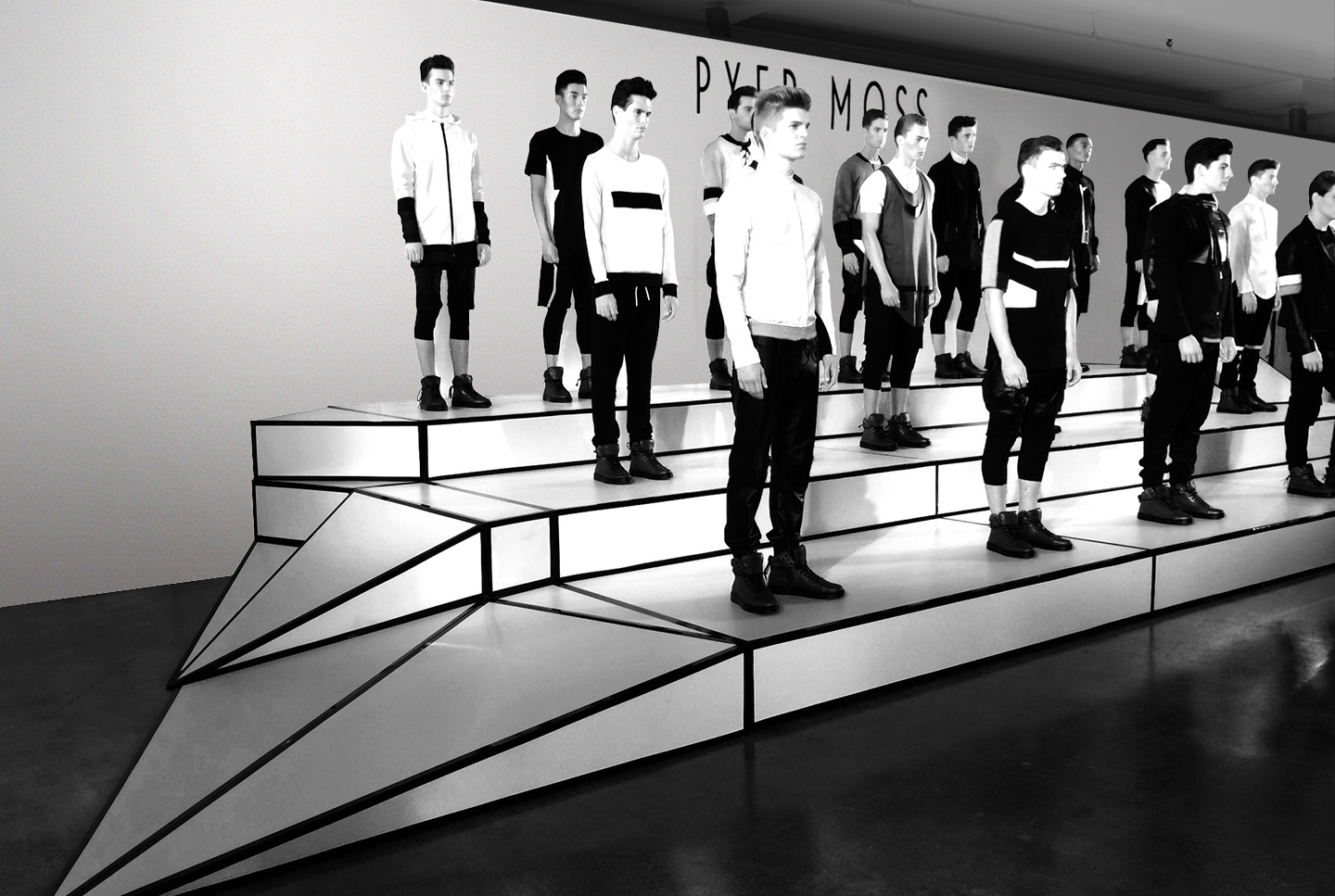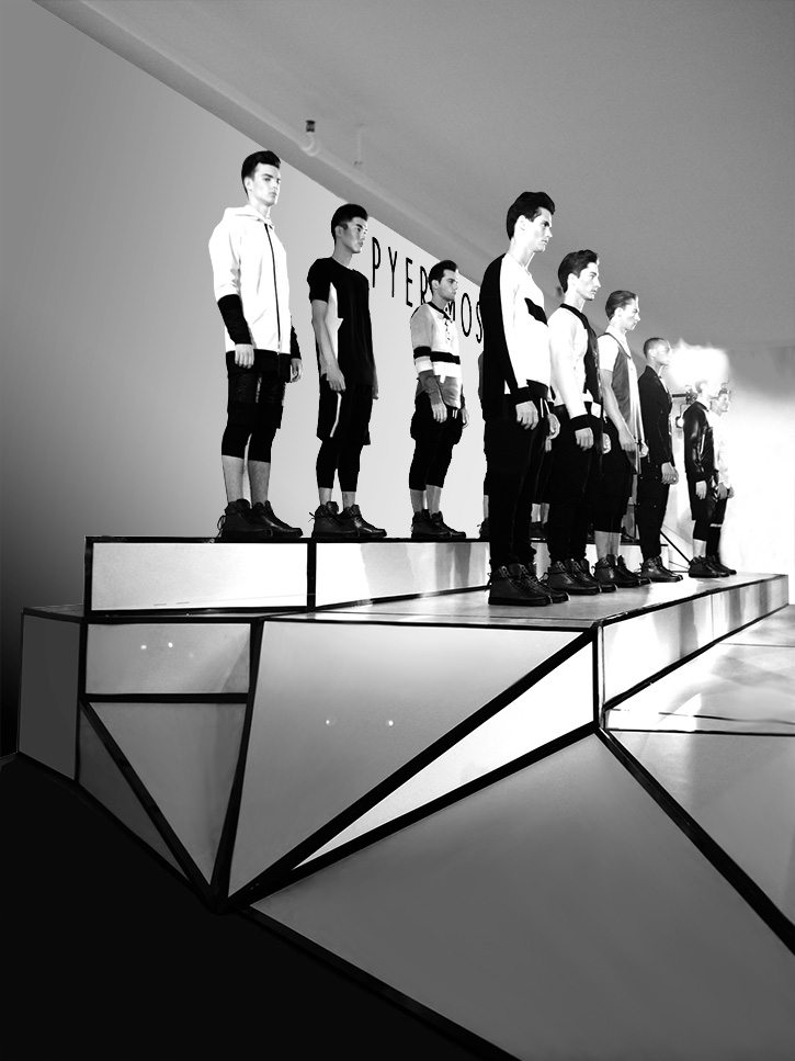 Pyer Moss wanted the show to feel like the future did in the 80’s. Incorporating faceted angles to reflect the collection, we built a stage for an 18 model presentation as part of NYFW.