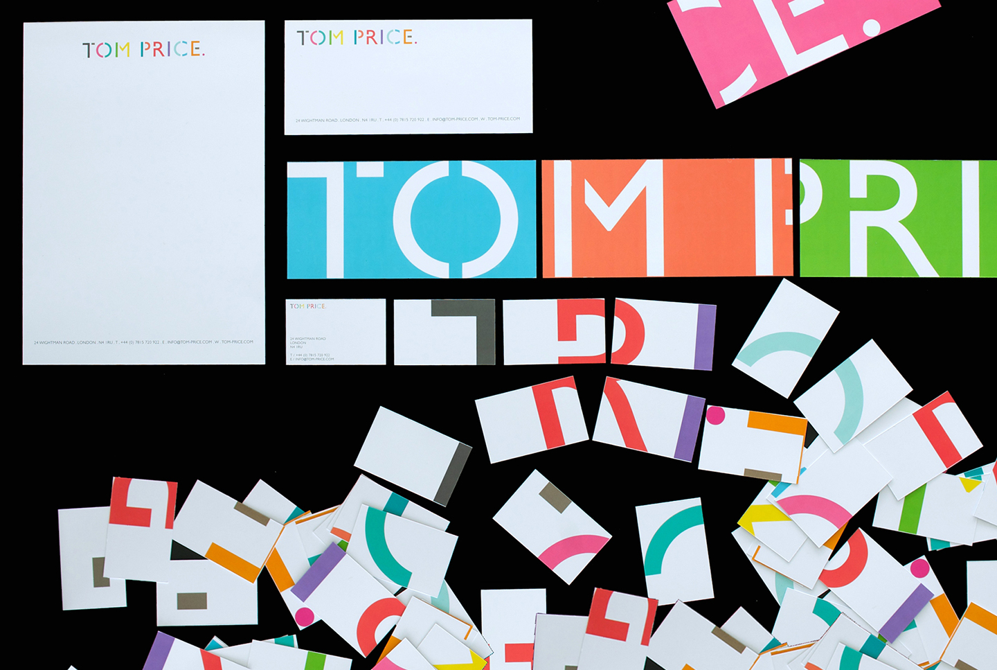 We created a logo that reflects the process of building and making something crucial to the work of furniture designer Tom Price. The logo can be reworked and broken up into endless combinations again highlighting the modular aspect to his work.